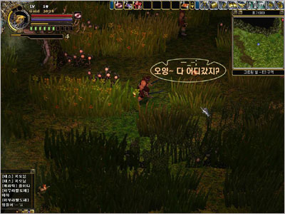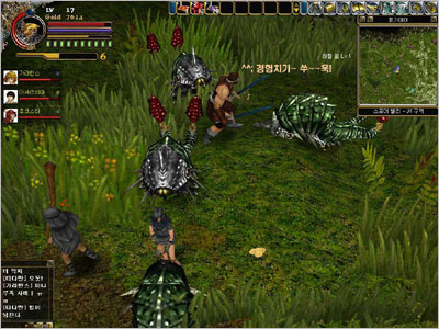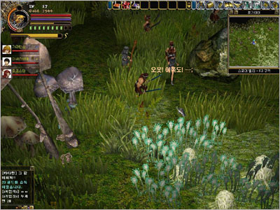 그래도 호크스타를 비롯한 파티원들의 활약은 정말 대단했다. 잠시 동안 급해(?) 화장실에 다녀왔을 때도 여전히 주위에서 내 따귀를 못때리게 지켜주고 있었고 혹시라도 몹에게 당해 라이프가 줄면 바로바로 힐링으로 회복해 주었다. 마침내 오로라가 온몸을 감싸더니 그토록 기다리고 기다리던 18렙이 되었다. 드디어 스킬을 살 수 있게 된 것이다. 하항!! 난 파티원들에게 스킬사러 마을에 다녀오겠다는 말을 남긴채 홀홀단신 발을 옮겼다. 마을로 가던 도중 난 이런 게이머와 맞딱뜨렸다. 네스 : 타다만 님!! 마나가루 파세여?