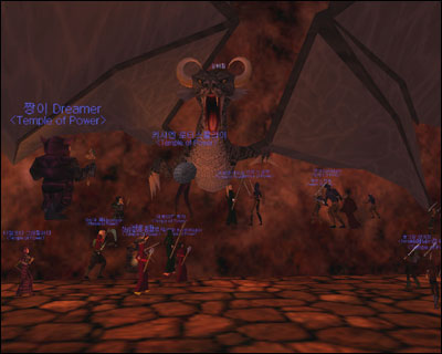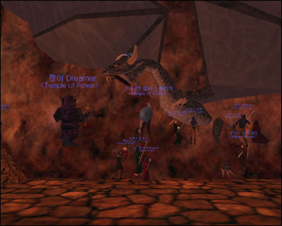 이렇게 농담을 하는 동안에도 몽크는 용가리들의 복도에서 '죽은 체'하면서 그들의 빈틈을 노리고, 전사들은 무기를 꽈악 쥐고 당당하게 선두에 서서 몽크의 외침을 기다린다. 마법사들은 저~ 구석에 앉아서 여전히 그들만의 만담의 세계에서 벗어날 줄 모른다. 물론 나도 사냥은 뒷전이라는 식으로 같이 논다. 가끔 말솜씨 없는 오우거 샤먼들과 유부남 몇 분은 벽에 얼굴을 묻고 조용히 앉아 있는데 혼자서 무엇을 하는지 도무지 알 수가 없다.