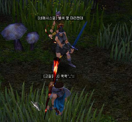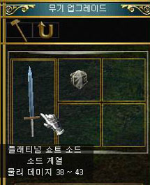 드디어 이글거림의 광체를 만끽할 수 있겠구나! 라는 기대를 안고 단숨에 마을로 달려온 나였지만 사실상 어떻게 해야 좋을지 막막했다. 인벤토리를 열고 영혼석옆에 방금전 운좋게 얻었던 플레티넘 쇼트 소드를 갖다대보기도 하는 등 이것저것 다 해보았지만 허사였다. 음! 수다맨이라도 부를까? --; 난 할 수 없이 지나가던 여인네에게 물어보기로 했다. [네메시스걸] 일리나님! 영석 먹었는데 어디서 장착해염? [일리나] 위에? 위로 간다.--; [일리나] 아니 바로 위에여! [네메시스걸] 아아! 여기여? [일리나] 거기서 무기제조도구 클릭하고 업그레이드 할 무기하고 영혼석 넣고 돌리시면 돼염! 돌려? 그말은 내게 디아블로의 호라드릭 큐브와 같이 무기와 보석 또는 룬을 넣고 돌려 무기를 업그레이드시키라는 말처럼 들렸다. 그런데 뭔가 다른 느낌이 들었다. 확실히... [네메시스걸] 감사!!