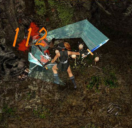 난 칼을 들여다보며 거울아! 거울아! 하며 앞으로 잘 좀 싸우게 해 달라고ㅡㅡ; 주문이라도 외우고 싶은 심정이었다. 그리고 스테이터스 창을 열고 데미지를 확인해 보니 무려 104! 우와! 내 딴에는 정말 높은 수치였다. 그런데,,. 그렇게 힘들게 싸워 모아놓은 경험치가 모두 분신으로 빠져나가자 사실상 캐릭터 레벨이 걱정되었다. 그러나 난 어떻게 되겠지! 라고 가볍게 마음을 먹었다. 음!! 솔직히 말하면 천군만군을 얻은 느낌이었다.! 나 덤벼! 라고 큰소리치며 의기양양해진 난 그 동안 금단의 영역이라 여겨졌던 엄마가 절대로 가지 말라고 신신당부했던 던전으로 향했다. |