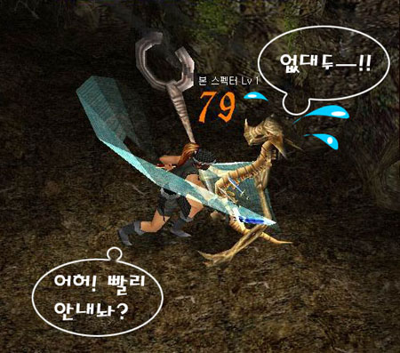난 조금 전 아보던전에서 내 분신의 파워를 확인한 후라 주저없이 거대한 몸을 향해 쌍칼을 휘둘렀다. 잠시 후 난 자신의 분신보다 강한 쇠망치의 위력에 경외를 표하고 유유히 그곳을 떠날 수 밖에 없었다.