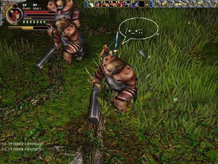 힘과 체력을 잔뜩 올려서 그런지 필드에서의 모험은 아무런 문제가 없었다. 한 참 밑으로 내려가던 중 난 내 옆을 스쳐가는 바스티안들의 분위기가 심상치 않음을 느꼈다. 엉? 방금 뭐였지? 그들의 등뒤나 손에는 마치 잘 달구어진 연탄집게(?)같은 쇳덩이가 이글이글 불타오르며 기염을 토하고 있었다. 오옷! 새로운 무긴가? 그렇다면... 혹시 영혼석과 무슨 관계가? 또 다시 밀려오는 궁금증에 기염이 아닌 혈염을 토한 난 보다 자세한 정보를 얻기 위해, 아니 사실은 스테츄 데일 근처에서 울려퍼진 한 메이지양의 비명소리를 듣고 무서워진(--;) 난 마을로 돌아가기로 마음을 바꿨다.