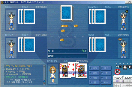 게임방이란 앞사람이 콜을 한 경우 대략 3~4초 이내에 콜인지 레이즈인지 죽든지 결정을 해야 하는 방이다. 3~4초 내에 결정을
