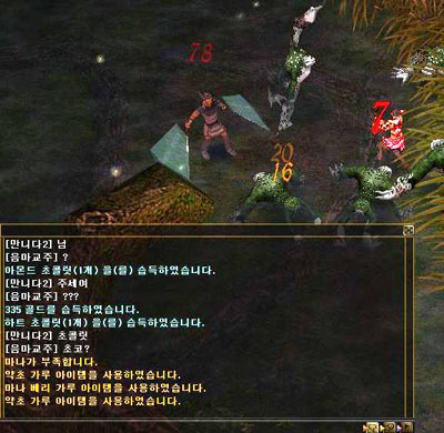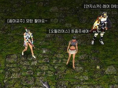 과연 조금 무리하면 씨크로우는 사냥이 가능했다. 2~3마리가 붙어도 살아남을 정도니 이제 악마와도 같은 40레벨 탈출은 시간문제였다. 하지만 한가지 잘못 생각한 것이 있었으니... 바로 초콜릿은 여성 캐릭터는 사용할 수 없다는 것. 약초가루, 힐링포션을 막 남용하고 나서 초콜릿을 사용하려하니 죽는 것은 당연지사. 정말 발렌타인데이의 악몽이라고 할 수밖에 없었다. 그러나 여기서 포기할 음마교주가 아니지. 약초가루만 있으면 레벨업은 금방이니 대량의 약초가루를 구하기 위해 자금을 마련해야 했다.
