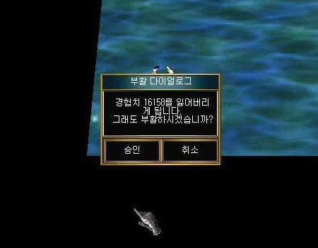 일명 우주버그! 난생처음 세상 끝을 보고야 만 것이다. 바다에는 들어갈 수 없다고 알았는데 음마교주는 당당히 바다안에 그것도 맵 최 하단 지역에 워프된 것이다. 아무리 움직여봐도 움직여지지도 않고 빠져나올 방법은 재접속뿐. 하지만...하지만... 천벌을 받은 것인지 세상끝에서 음마교주는 생을 마감하고야 말았다. 16,158의 경험치가 날라가는 순간이었다.