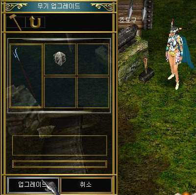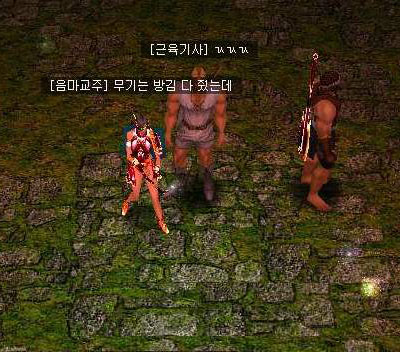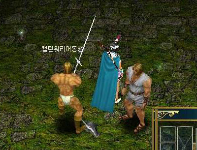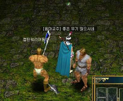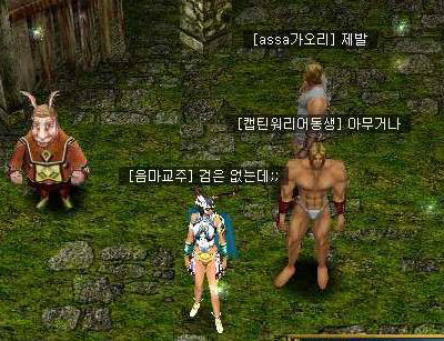 이런저런 사정이 있었지만 어쨌든 아이템을 줬으니 임무 완수 다시 초보를 찾기가 무섭게 또 한명 아니 두명이 동시에 아이템을 달라고 요청한 것이다. ‘앗싸~ 가오리~’를 외치며 착한일 하기도 쉽다고 생각하면서 어떤 사람들일까 살펴보니 한명은 ‘캡틴워리어 동생’, 또한명은 ‘assa 가오리’라는 이름의 캐릭터였다. 순간 당황 --;. 일단 창고로 데려와서 줄만한 아이템을 고르는 데 ‘캡틴워리어 동생’님은 자기가 쓸 검을 지정까지 하는 것이 아닌가