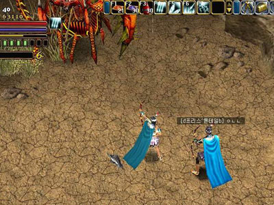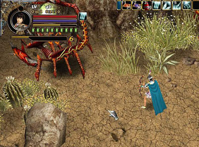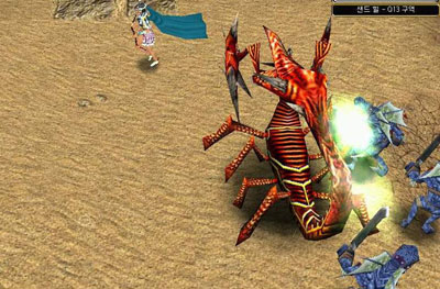 이 정도 크기면 잡으면 뭔가 나와도 나오겠지 하고 욕심을 부렸고 뒤에 따라오는 몬스터는 안중에도 없이 눈에 보이는 거대 자이언트 스콜피온을 향해 달렸다. 그러나 뒤따라 오는 몬스터에게 조금씩 체력이 깎여나가 풀 HP가 아닌 상태에서 한방 맞으니 그대로 사망(--);. 하지만 이 천재일우의 기회를 놓치는 것은 너무나 아까웠다. 부활하지 않고 재접속을 해서 사망한 자리에서 일어났으나 기다리고 있었다는 듯이 또 한방 맞고 다시 누워버렸다. 이런 삽질을 5번 반복한 뒤에 포기할 마음을 먹고 마을로 워프하려는 순간 아쉬움에 마우스를 몬스터에게 가져간 순간 화면에 표시된 것은 무려 ‘자이언트 스콜피온 레벨 1’ 이었다.