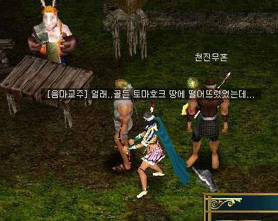 이번 캠페인은 꿩 먹고 알 먹기, 도랑치고 가재잡기, 일석이조나 다름이 없다는 것도 아주 훌륭한 이벤트다. 일단 마을에 가면 아이템을 원하는 초보가 수두룩하니 찾아 돌아다닐 필요도 없고 가만히 은행앞에 있다가 아이템만 나누어 주면 되는 것이니 이처럼 편한 선행이 어디 있겠는가. 역시 마을에 도착하자마자 눈에 보이는 초보들이 즐비했다. 마침 한명의 초보가 다가와서 아이템을 요청하면서 산뜻한 선행 이벤트 스타트~