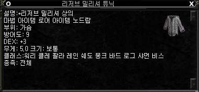 하지만… 예비군복은 뎅님에게 가장 소중한 아이템 중 하나가 아닐까 한다. 끈질긴 노력으로 만들어 낸 퀘스트 아이템이기에 비록 노라쓰 상인이 '동전 1닢' 짜리라고 해도 그때의 노력과 공은 수천, 수만 금과도 바꿀 수 없는 소중함으로 뎅님의 가슴에 남아 있기에. 여전히 그 예비군복은 뎅님의 은행에 고이 모셔져 있다. 가끔 은행을 들러 꺼내보면서 그 옛날 삽질의 추억을 더듬게 해주는 소중한 아이템이기에…. 이제 비록 자칭이나마 고렙으로 성장한 뎅님. 이제는 진짜 던전으로 가야 할 때다. 조국에서의 개구리들과 대 혈전. 장원에서의