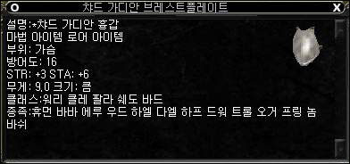 뎅님은 그걸 팔아서 돈이라도 만들어 보려고 상점에 가서 의뢰를 해보았더니… 상인 왈. "동전 1닢 쳐주겠소." 계속 해서 흐르는 눈물. 닷새의 노력이 동전 한닢으로 되돌아오다니… 차마 그 노력이 아까워 팔지는 못하고 계속 인벤토리에 넣고 다니면서 한번씩 꺼내 입어보곤 했다. 노드랍이라 다른 사람에게 줄 수도 없고.