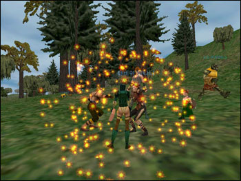 | 에버퀘스트 기행: ⑫ 뎅님, 광활한 대륙을 점령하다! 그런데 한 그룹은 6명까지만 가능하니… 그 보다 많은 사람들이 같은 시간에 같은 장소에 몰릴 경우 누가 그 곳에서 사냥을 할 지 매번 정해야 한다면 아무리 이해심이 많고 매너가 좋은 에버퀘스트 사람들이라 해도 분쟁이 일어날 수밖에 없을 것이다. 그리하여… 오랫동안 게임을 해 오던 에버퀘스트 플레이어들은 이에 관한 암묵적인 규칙을 만들었는데 그것이 바로 '먼저 온 사람이 임자'라는 단순하지만 가장 합리적일 수밖에 없는 규칙이다. 누군가 먼저 캠프를 하고 있다면 다가가서 정중히 함께 할 수 있는지 여부를 물어보거나 기다렸다가 그룹에 끼거나, 나중에 하는 수밖에 없다. 이런 룰을 어기고 남들이 사냥을 하고 있는 곳 근처의 몬스터를 잡는 것은 상당한 비매너에 해당하며 들은 이야기이지만 게임마스터로부터 제재를 당할 수도 있는 문제라고 한다. 어느 사회나 더불어 살아가기 위해서는 법과 질서가 필요한 것이라고 도덕시간에(사회문화 시간인가… 가물가물.. 하여튼 학교에서 -0-) 배우지 않았던가. 에버퀘스트도 똑같다. 지난번에 이미 말을 했듯 몬스터들은 자기보다 레벨이 높은 사람이 와서 치면 아무리 자기편이 옆에서 맞아도 떼로 덤비지 않는다. 즉 그 오크 캠프에 달님이 가서 치면 달님이 때린 놈만 따라오지만 뎅님이 가서 칠 경우 떼로 덤벼들어 뎅님의 목숨은 바람 앞의 등불이 되는 것이다. 그런데, 보통 좋은 캠프 장소란 자기보다 약간 높은 레벨의 몬스터들이 그것도 떼를 지어 모여 있기 마련. 한 마리씩 안정적으로 풀링을 하는 것이 쉽지만은 않다는 이야기다. 이 문제를 해결하는 데는 다양한 전술이 동원될 수 있다. 프리스트 계열 클래스가 시전할 수 있는 수드나 하모니 마법으로 몬스터들의 공격성향을 낮춘 후 한마리씩 데려올 수도 있고 네크로가 있을 경우에는 일단 덤빈 후 따라오는 놈들을 피어 마법(몬스터를 순간 공포에 질리게 해서 무조건 도망가도록 만드는 마법)으로 멀리 떼어낸 후 한 마리씩 해결해 나갈 수도 있을 것이나… 대부분의 경우에는 근처의 레벨이 높은 사람에게 부탁해서 캠프를 한번 클리어한 후 순차적으로 다시 나타나는(팝 이라고 한다) 몬스터를 안정적으로 잡는다
