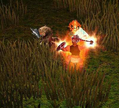 래틀웜을 잡다보면 어느 순간 레벨 13~14를 넘어가는 자신을 볼 수 있을 것이다. 이제 래틀웜도 지겨워졌다면(레벨 13정도부터는 지겨울 것이다) 펑가이아 포레스트로 넘어가서 포이즌 버스트와 마시마곳을 사냥하기로 결정~ 그러나 아직은 무리라고 생각한 음마아빠. 어디선가 팻덕여사가 등장했다는 소문을 듣고 마을로 달려가기 시작한다. 아니나 다를까 팻덕여사는 오늘도 자신의 생활비 마련을 위해 메이지 세트와 레인저 세트를 팔고 있는 것이 아닌가. 오셔너스를 당당하게 들락거릴 정도면서 저런 허름한 차림을 하고 장사를 하다니... 오셔너스에서 주은 아이템(비교적 고급아이템들이다)을 마을에 와서 비교적 저렴한 가격에 팔고있는 팻덕여사의 놀라운 장사수완은 절말 놀랍기 그지 없다.