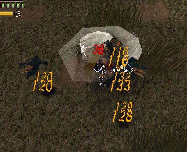 얼마의 시간이 흘렀을까? 제자리에서 몇 바퀴를 돌아 칼질을 하던 핑크피그는 주변이 조용해 진 것을 느꼈다. 정신을 차려보니 적들은 주변에 피를 흘리며 형체를 알아볼 수 없을 정도로 흩어져 있었다. 겨우 위기 상황을 모면했지만 경험치가 상당량 올라간 것을 확인할 수 있었다. 역시 샌드힐은 기회의 땅이 분명했다.