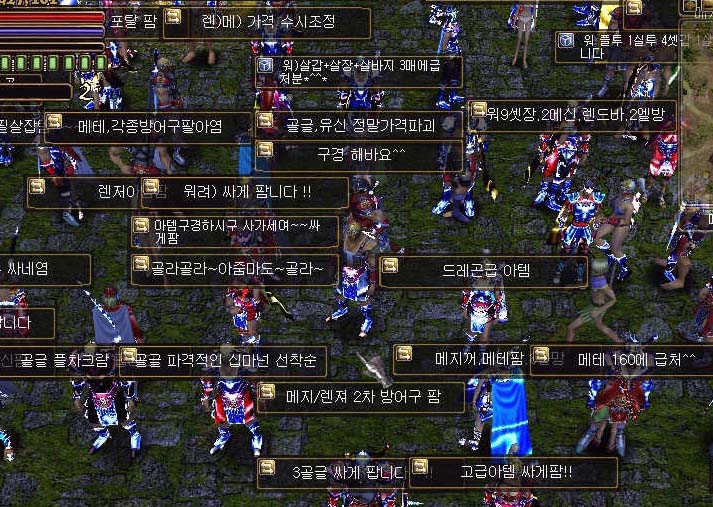 그 이유는 파는 유저들은 원하는 가격을 책정한 후 시장에 내 놓기 때문에 파는 사람도 편하고 사는 사람도 편하게 된 것이다. 또 한꺼번에 물건을 파는 분들이 생겨나면서 가격대 성능비를 충분히 따질 수 있으므로 경제적인 아이템 구입이 가능해 졌다. 또 파는 분들을 위해 일일이 텍스트를 쳐야 하는 노가다가 없어졌고 그동안 아이템의 줄임말로 장사를 했기 때문에 아이템 종류를 모르는 초보유저들은 아이템 구입이 난감했지만 이젠 그런 불편함이 완전 해소되었다. 장사하기 편해졌군! |