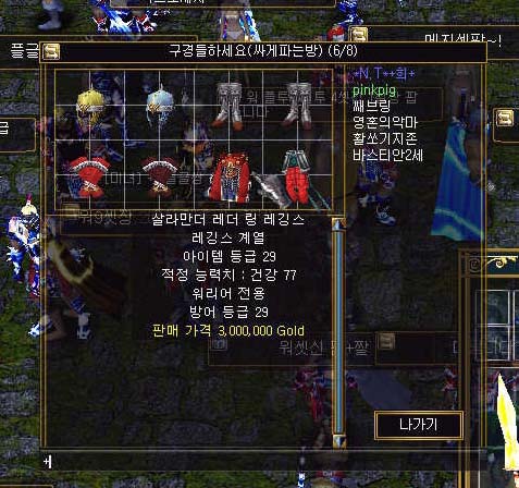 사실 레벨30에 번쩍거리는 아이템 치장을 못한 것은 수치스러운 일이었다. 그동안 암흑_워리어님의 도움으로 명맥을 이어갔지만 손수 구하지 못한 것은 창피스러운 일이었다. 하지만 아이템을 충분히 구할 수 있는 여력이 있었지만 실세에 어두워 비싼 값에 아이템을 구입한 것이 주된 요인이었다.