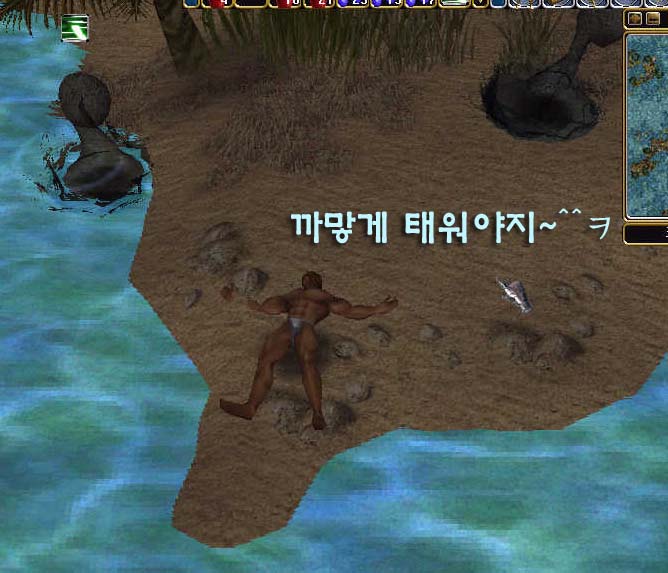 이처럼 온라인게임은 스스로 그 안에서 재미를 찾고 스스로 만들어 가야할지도 모른다. 항상 레벨업에만 치중하여 게임을 진정으로 즐기지 못하는 게이머가 있다면 잠시 눈을 돌려 약간의 여유를 찾는 것은 어떨까? 무더운 여름이 시작된 요즘 아름다운 해변이 펼쳐진 코랄비치로 미리 여름휴가를 떠나보는 것도 괜찮은 방법이 아닐까? 능력만 된다면 코랄비치에서 홀딱 벗고 썬탠을 즐길 수 있다고 한다. 이렇게....^^ 그럼 다음 기행에서 만나요!