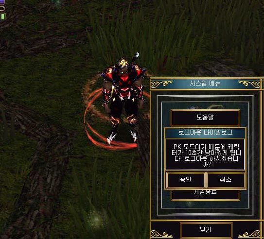 나름의 4개조항의 신조를 작성한 후 열심히 열렙중인 유저에게 시비걸기를 시작했다. 일단 들고 있던 골글을 인벤에 집어넣고 'PK/ON'을 입력! 둥그런 무엇인가가 몸을 감싸더니 잠시동안 이동이 불가능 했다. 두 주먹 불끈 쥐고 첫 번째 눈에 들어온 법사를 향해 성큼성큼 다가갔다. 하지만 PK모드를 실행하면 발밑에 원형문장이 따라다니기 때문에 이것을 본 유저는 도망을 치거나 무시를 해 버린다. 그런 이유에서일까? 몹을 잡고 있는 유저에게 다가가 말도 걸기 전에 ‘꺼져!’라는 소리를 듣기 일쑤였다.