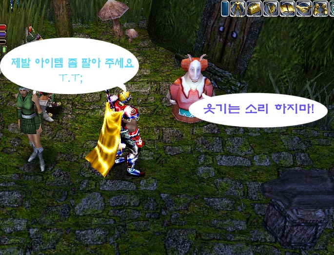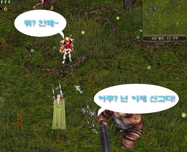 의도는 그런 것이 아니었지만 자초지종을 설명하자니 괜스레 항의가 들어올 것 같고...(혹! 기행을 보시는 건 아닌지? 만약 그러시다면 머리 숙여 사과드립니다.) 일단 침묵을 하고 있으니 신고한다고 큰소리 뻥~뻥~ 치면서 사라졌다. 포션이라도 드렸어야 하는데...
