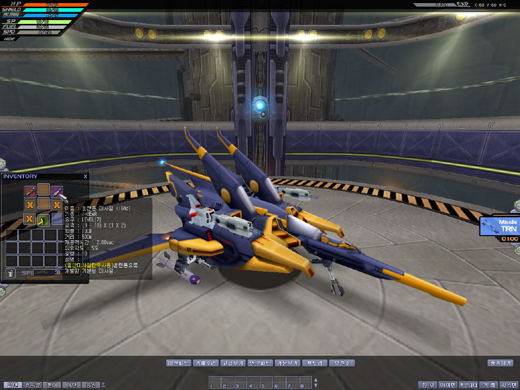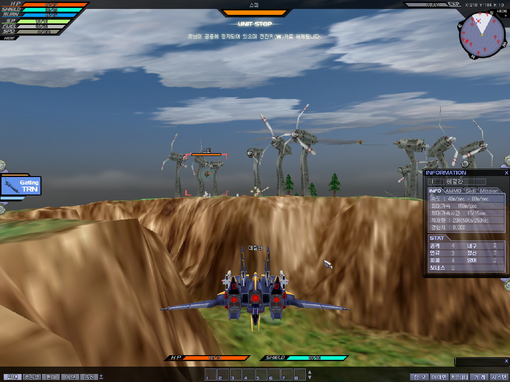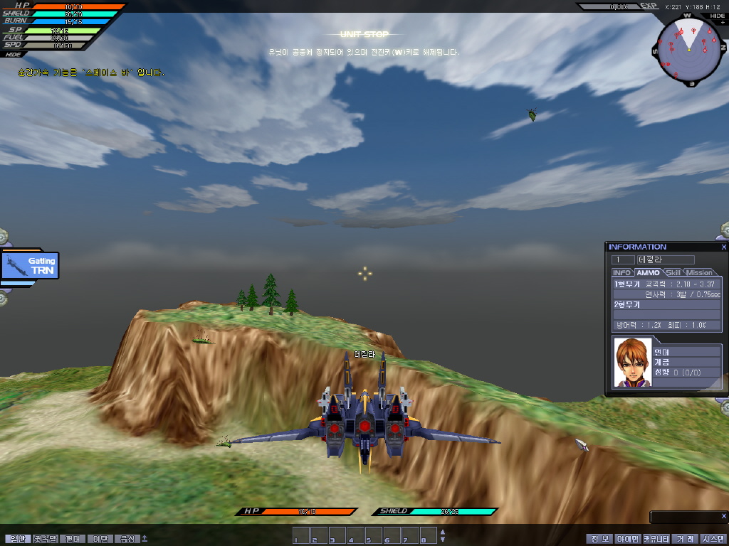 정보창(단축키 <V> or <F5>)을 열어보면 기체의 속도, 최대 가속시간, 적재량, 경험치 등을 확인 할 수 있으며, 레벨이 한 단계씩 올라 갈 때마다 자신의 개성에 따라서 공격, 내구, 회피, 방어력 등의 스탯을 조절 할 수 있답니다.