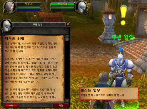 와우에서 제일 먼저 보게 되는 느낌표는 부관 윌렘이다.