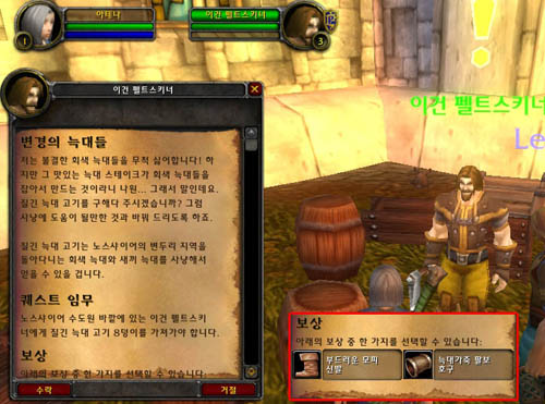 신발 과 늑대가죽 팔보호구 중 하나를 보상으로 받을 수 있다.