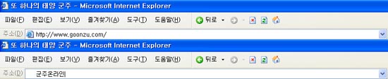 인터넷 주소창에서 위처럼 http://goonzu.com 혹은 “군주온라인” 이라고 치면 군주 홈페이지로 가게 되요. 그곳에서 아이디를 만들어야겠죠?