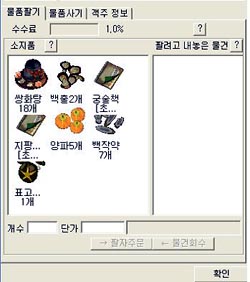 우선은 물건을 파는 방법을 알아 보도록 하겠습니다. 이것은 무척 간단합니다. 우선 팔려는 물건은 클릭하세요. 왼쪽에 있는 것들이 내가 갖고 있는 팔 수 있는 물건 들입니다. 팔고 싶은 물건을 왼쪽 버튼으로 클릭 한 다음 아래의 ‘단가’의 행목에 내가 받고 싶은 가격을 쓰면 됩니다. 물품을 팔려는 개수는 앞의 개수라는 곳에서 조절하면 되고요. ^^ 그런데 내가 갖고 있는 물품의 정확한 가격은 어떻게 알 수 있을까요? 물품의 시세는 변동이 많습니다. 그렇기 때문에 시세를 쉽게 확인하는 것이 쉽지 않은데요. 물건을 사거나 파는 방법을 보면서 시세를 파악하는 방법도 알아보도록 하겠습니다. |