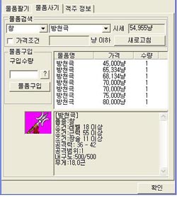우선 물건을 고를 때에는 무기의 경우에 공격력과 내구도를 잘 봐야 합니다. 방어구라면 방어력과 내구도 이겠지요? 가끔은 불량품이 위장을 하고 나오기도 하니까 두눈 동그랗게 뜨고 잘 보도록 하세요! ^^