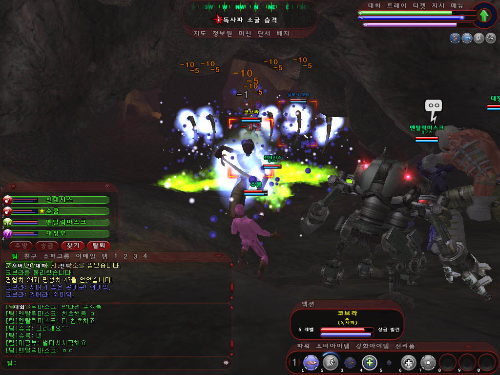 그리고 여차저차한 과정을 거쳐서 드디어 파티플레이에 꼭 필요한 5명이 뭉쳤다! 왜 하필 5명이냐고? 독수리 5형제부터 후레쉬맨까지 유명한 영웅들은 모두 5명씩 몰려다니며 악당에게 몰매를 놓지 않던가! 고로 우리도 5명이 함께 다녀야 그런 ‘비겁한 수단’에 당하지 않는다, 이 말씀!