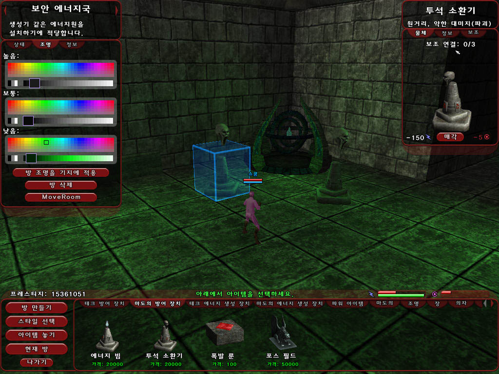 그것은 바로 제어장치와 에너지 생성장치다. 각각 커뮤니케이션 센터와 에너지국을 통해 만들 수 있는 이 두 가지 장치가 부족하면 아지트 내부의 트랩과 텔레포트 시설 등을 사용할 수 없게 되니 주의하자.
