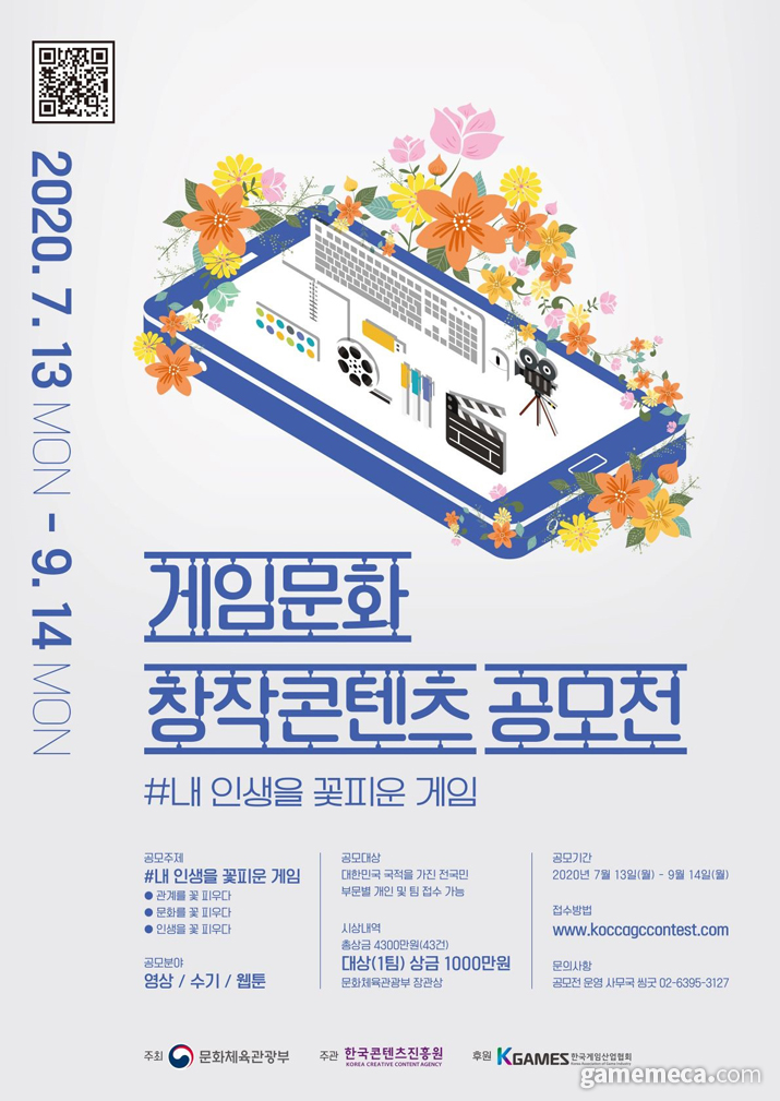 문화체육관광부가 주최하고 한국콘텐츠진흥원이 주관하며, 한국게임산업협회가 후원하는 게임문화 창작콘텐츠 공모전이 오는 7월 13일부터 9월 14일까지 진행된다. 게임문화 창작콘텐츠 공모전은 게임의 사회문화적 가치와 건강한 게임 이용에 대해 국민 스스로 생각해볼 수 있는 기회를 만들고자 마련됐다
