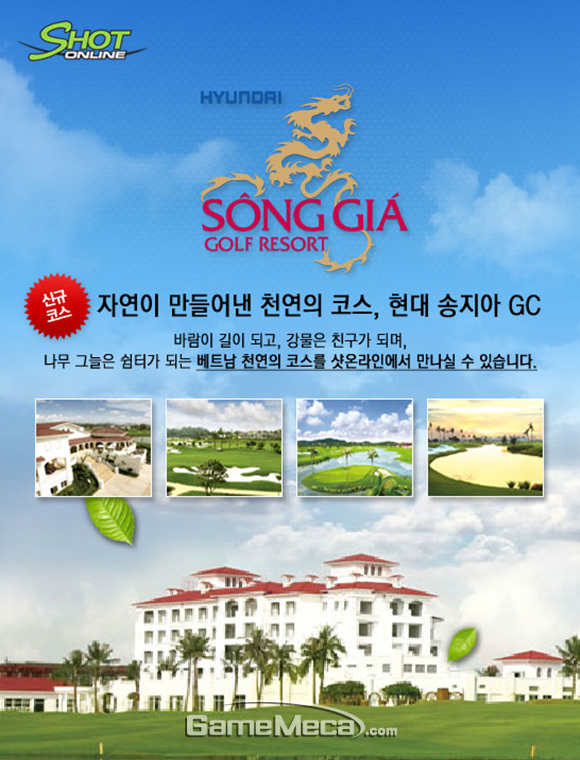우선 베트남 하이퐁시에 위치한 유명 골프장인 현대 송지아 골프클럽의 코스가 샷온라인 신규 코스로 들어왔다. 현대 송지아 GC 골프코스는 PGA 국제투어 기준에 따라 설계된 18홀(파72, 7,283야드) 코스를 실제의 지형과 코스 설계를 그대로 게임에서 구현했다. 코스 난이도는 중급 수준으로, 누구나 제한 없이 즐길 수 있다.
