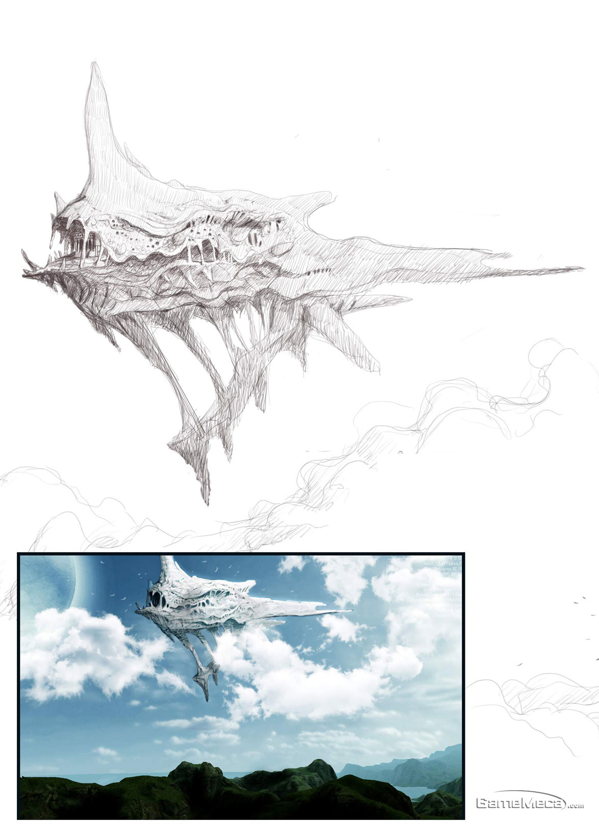 ▲ 아이온의 세계를 나타낸 컨셉아트, 아래는 공중던전 |