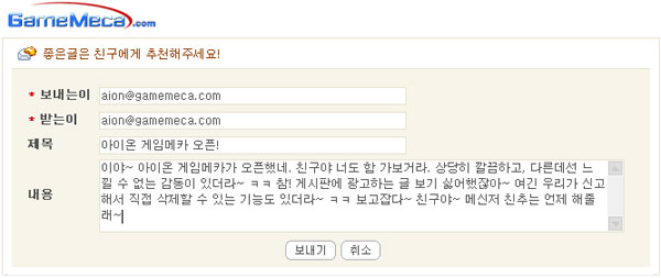 아이온 게임메카를 게임을 좋아하는 기자들과 게임의 감동이 무엇인지 알고 있는 여러분들과 함께 어울릴 수 있는 공간으로 만들어 가고자 합니다. 앞으로 아이온을 사랑하는 모든 이들이 함께 할 수 있는 더욱 멋진 커뮤니티로 발전할 수 있도록 최선을 다해 노력하겠습니다. |