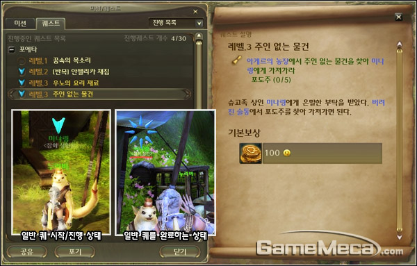 정보에 초점을 두고 작성했고, 퀘스트 진행은 하나씩 처리하는 게