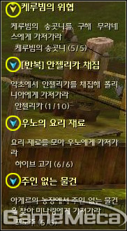 퀘스트 이름 앞의 칸에 체크를 해두면 화면 좌측 상단에 자신이 보고자 하는 퀘스트들을 표시할 수 있습니다. 이 기능으로 볼