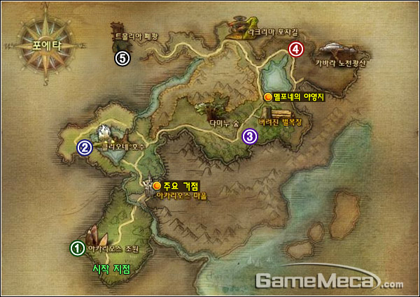지역의 전체 지도입니다. 처음 캐릭터 생성부터 플레이어가