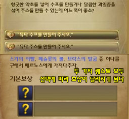 스승과 대화한 후 자신의 직업에 맞는 보상 선택