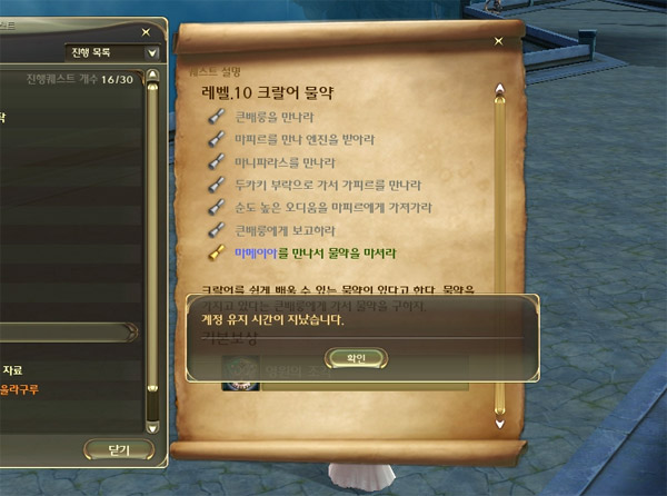 ▲퀘스트 완료를 위해 열심히 뛰어가던 중 끝나버리다니, 아아.. 야속한 시간이여!