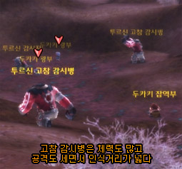 언덕에서 최대한 몬스터를 피하시면서 고고하스의 야영지를 지나 다른 방향 비탈로 내려가시면, 그 곳에서 "큰 갈퀴발톱 프릴파이맘"을 쉽게 만나실 수 있습니다.