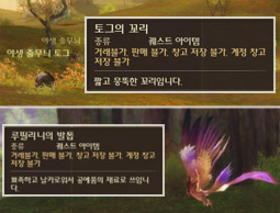 톨바스 숲 동부에서 톨바스마을로 향하시면서 "야생 줄무늬 토그"를 처치하여 <토그의 꼬리>, "초목 루필리니"를 처치하여 <루필리니의 발톱>를 입수합니다.