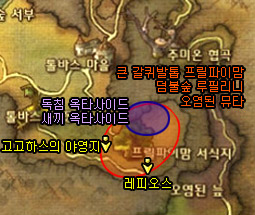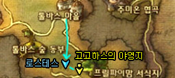 레피오스에게 [오염된 체액 채취]퀘스트를 완료받은 후, 아까 내려왔던 길을 되돌아가 고고하스의 야영지의 일로스에게 [독주머니 채취]를 완료받습니다.