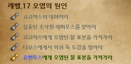 여러가지 물품 구입이 끝이 나면, 순간이동 석상을 통해 현자의 서고로 바로 이동하여 디모스에게 <희귀 독 도감>을 받는 [오염의 원인]미션을 갱신합니다.