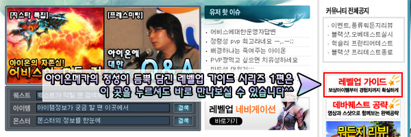 제 글에 많은 성원을 보내주신 분들께 다시 한번 감사드리는 마음으로^^ 아이온메카의 야심찬 특집!! 레벨업 가이드 제 2탄을 시작하겠습니다.