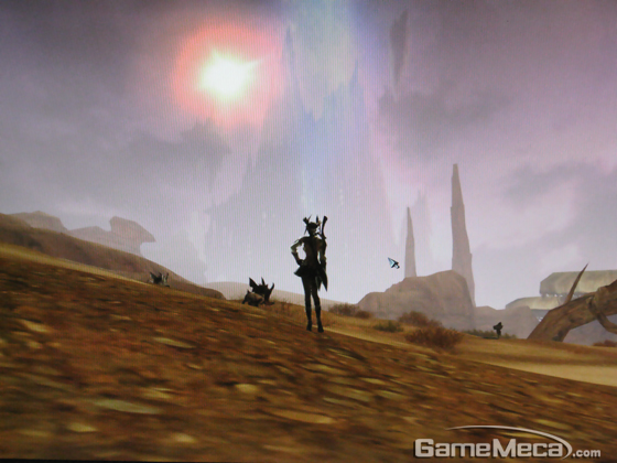 천족의 신규지역 엘테넨은 사막과 정글이 섞여있는 다양한 모습의 지역들을 만나볼 수 있었습니다. 특히 엘테넨에서 발견한 사막은 아이온 직업소개 동영상과 소설&복식 영상에서 익숙하게 만나보았던 바로 그 지역입니다. 천족의 엘테넨 지역이 전체적으로 익숙하게 느껴졌던것은, 아무래도 기존의 공식 영상을 통해 꽤 소개된 지역이기 때문이 아닌가 합니다^^ 몬스터인 "추적자 쉴룩"의 경우... 관계자분의 설명에 따르면 통통한 거미의 몸체가 씰룩거린다고 해서 비슷한 어감을 가진 "쉴롭"을 선택하셨다고 하는데... 믿거나 말거나입니다 -_-; (기사 취재당시 만우절이었다는 것은 조금 꺼림찍하지만, 한 번 듣고나니 절대 이 몬스터의 이름을 까먹지 않게 되더군요;)