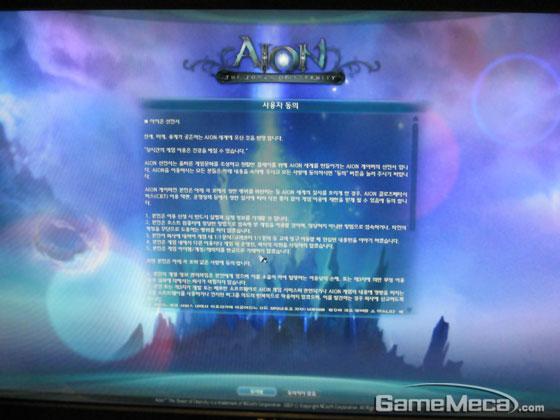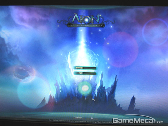 아이온의 실행화면과 캐릭터 선택화면은 전체적으로비쥬얼적인 부분이 더욱 강화되었습니다. 현재는 사진 한장이라 느낌을 전달드리긴 어렵지만, 화려하게 시작화면을 수놓는 역동적인 색체는 접속하기도 전에 "와!" 하는 탄성을 지르고 싶을 정도였습니다.