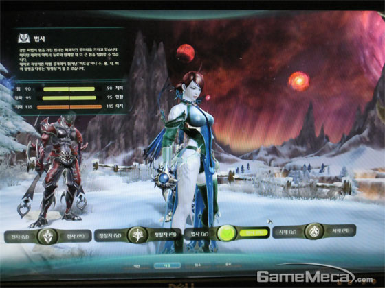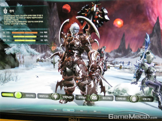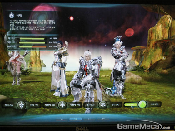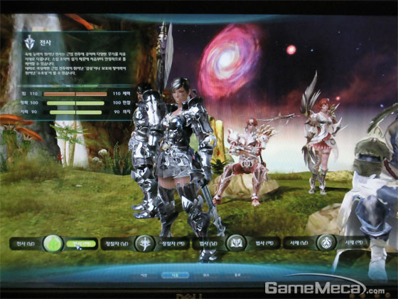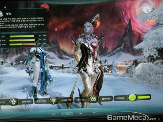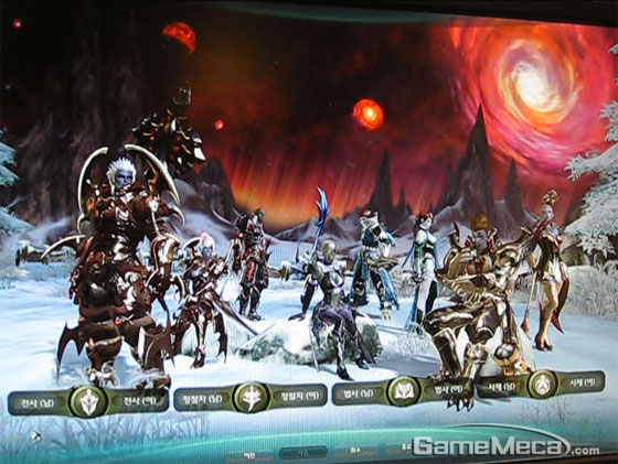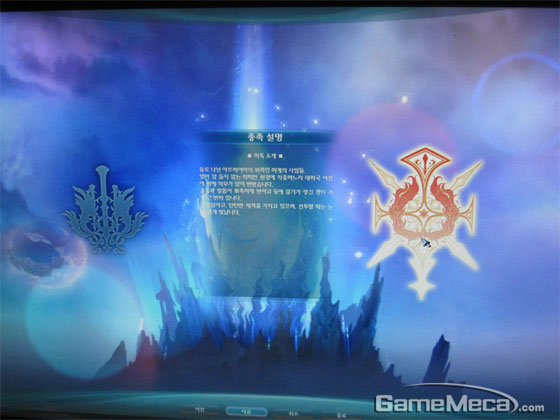 접속한 뒤 캐릭터 생성화면에서는 각 직업군들이 최종적으로 성장하였을 경우 접할 수 있는 멋진 아이템들로 무장한 캐릭터들을 미리 화면으로 만나볼 수 있었습니다. 각 캐릭터를 선택할 때마다 그들의 최종 직업 컨셉에 맞는 멋진 스킬 이펙트를 보여주기 때문에, 캐릭터를 생성하는 유저들에게 시작부터 "아, 나도 나중에는 이런모습이 되고싶다!"라는 동기부여를 해주기에도 충분한 모습이었습니다. ※ 아이온 CBT시즌2 기자시연회, 캐릭터 생성 체험영상 보러가기(클릭!)