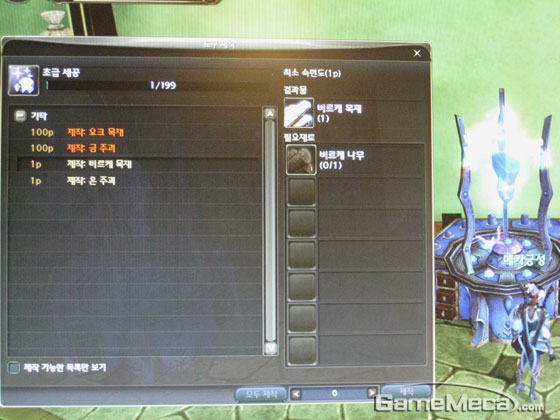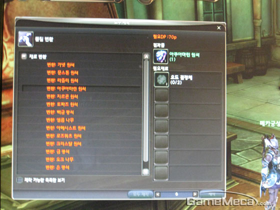 제작 인터페이스에서 가장 눈에띄게 바뀐 부분은 인터페이스 자체의 "크기"였습니다. 목록에 나열되는 갯수는 조금 줄었지만(기존의 19줄→15줄), 공간을 넓게 쓰는만큼 좀 더 큰 크기의 폰트를 사용하여 가독성이 증가했습니다. 또한 목록에 표시되는 제작가능 종류의 색깔이 현재 캐릭터의 제작 숙련도에 따라 색깔이 바뀌는 점과, 이름 앞에 숙련도 표시가 추가되어 이제 더이상 직접 클릭하지 않고 목록만 봐도 해당 도안의 숙련도를 좀 더 쉽게 알 수 있다는 점에서 유저 편의성의 증가가 눈에 띄었습니다.