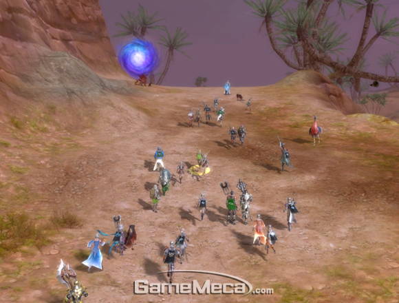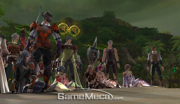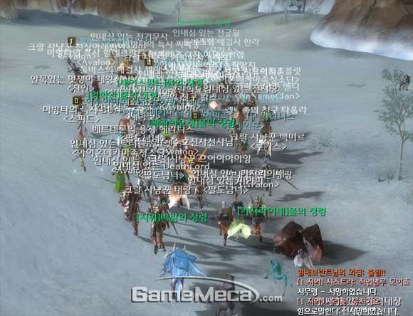 ▲ `시공의 균열` 앞에서 마족을 기다리는 천족들. 이런 전술은 나름대로의 효과를 거뒀다. 그러나 이런 천족의 고군분투에도 불구하고 천족은 전체적으로 고전하고 있었으며, 마족의 본진인 ‘모르헤임’을 공략하려던 천족의 역공은 모두 실패로 돌아갔다. 천족의 레벨 부족과 모르헤임 근처의 복잡한 지형 탓도 있지만, ‘제국’ 레기온을 앞세운 잘 단합된 마족 앞에서 천족은 그저 오합지졸에 불과했다. 마족의 우세속에 서버를 충격속에 몰아넣을 엄청난 사건이 벌어지고 말았다.