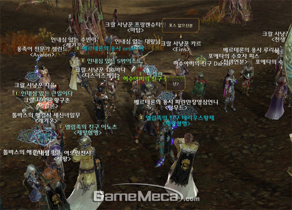 ▲ 어비스가 추가되었지만 시즌2와 마찬가지로 엘테넨은 북적거렸다. (스크린샷은 시즌2의 모습) 사실 마족의 ‘주공’이 어비스로 몰린 상황에서 엘테넨 요새가 위협받을 이유는 없었다. 어차피 시즌2야 어비스가 없었기 때문에 일종의 ‘심심풀이’ 차원에서 원정을 왔던 것이지, 신나게 천족을 바를 수 있는 어비스가 있는데 마족이 굳이 위험을 무릅쓰고 엘테넨까지 올 이유가 없기 때문이다. 이런 사정은 천족 뿐만 아니라 마족도 마찬가지였다. 어비스야 매일매일이 박터지는 ‘만인에 대한 만인의 투쟁(홉스가 말한)’의 연속이었지만, 시즌2의 주 전장이었던 엘테넨이나 모르헤임은 불안한 평화를 유지하고 있었다. 그리고 대부분의 천족들 역시 평화에 만족하며 느긋하게 사냥과 퀘스트에 열중 할 뿐이었다.
